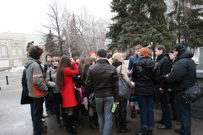 Пикетка татар филологиясе чыкмаса да, урыс филологлары килде. Алар факультеттан укытучыларны кыскартуга каршылык белдерә.